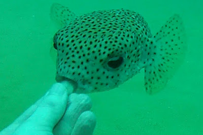 I had 3 dives in Mexico during our visit and had several unique and exciting animal encounters to share. The first dive at Land's End was also my first dive since 2011 but any apprehension I might have had quickly evaporated when my guide Julio dug around in the sand and produced tiny sea urchins which puffer fish would swim up and take right from your fingertips. They were very gentle but certainly had tough little teeth in there for crushing and grinding up urchin shells and spines.